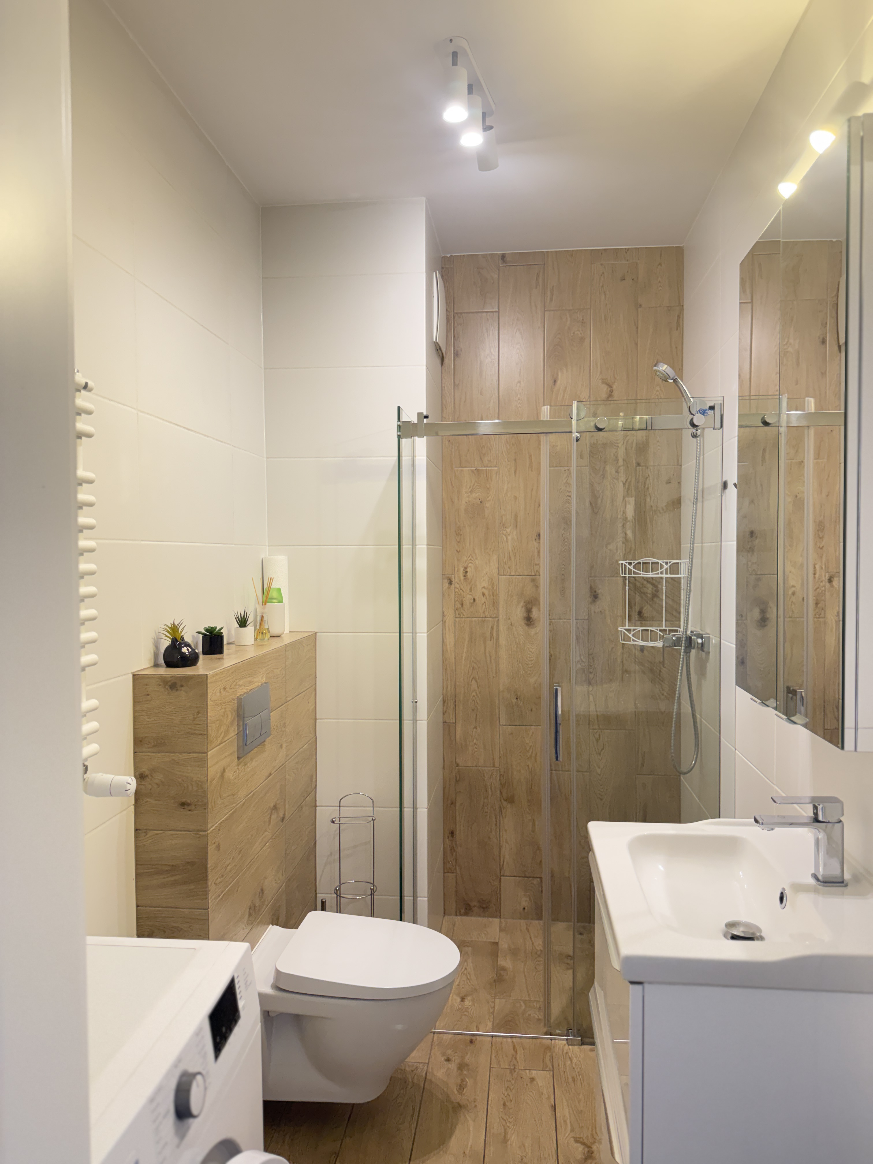 - Przedpokój: szafy w zabudowie – sporo miejsca do przechowywania